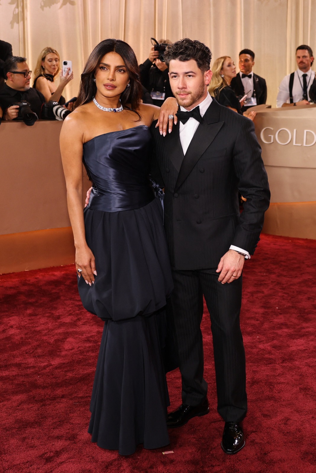 Priyanka Chopra arrived at the Golden Globes with her singer-husband Nick Jonas, with the two setting the red carpet on fire. For the event, PeeCee chose a stunning blue off-the-shoulder tiered gown from Dior, which she paired with Bulgari jewellery. Jonas chose a classic tux and bow tie, demonstrating why black and blue pair so well.