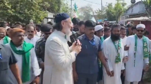 AIMIM Chief Owaisi holds door-to-door election canvassing ahead of Telangana municipal polls