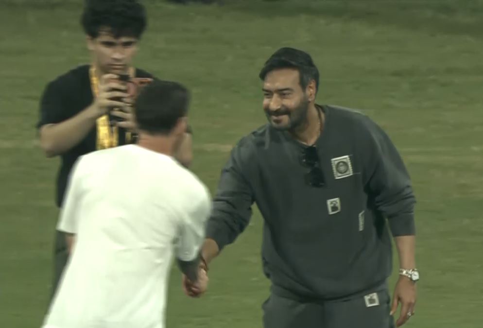 Ajay Devgn met the football stars, who shook hands with him, before he was welcomed by the Maharashtra Chief Minister, Devendra Fadnavis.