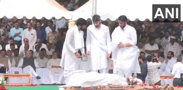 Pawar's sons, Parth and Jay also performed the last rites rituals of their father. Sunetra Pawar, wife of Ajit Pawar and Rajya Sabha MP paid last respects to her husband.