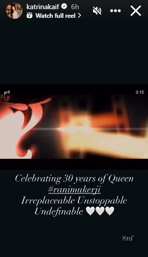 Katrina Kaif lauded Rani Mukerji as "undefinable" as she wrote, "Celebrating 30 years of Queen #ranimukerji Irreplaceable Unstoppable Undefinable."