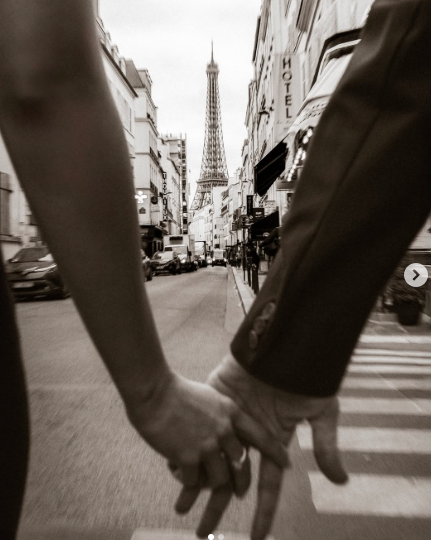 In the romantic picture, Allu Sirish is seen holding Nayanika's hand in Paris, with the Eiffel Tower visible in the background.