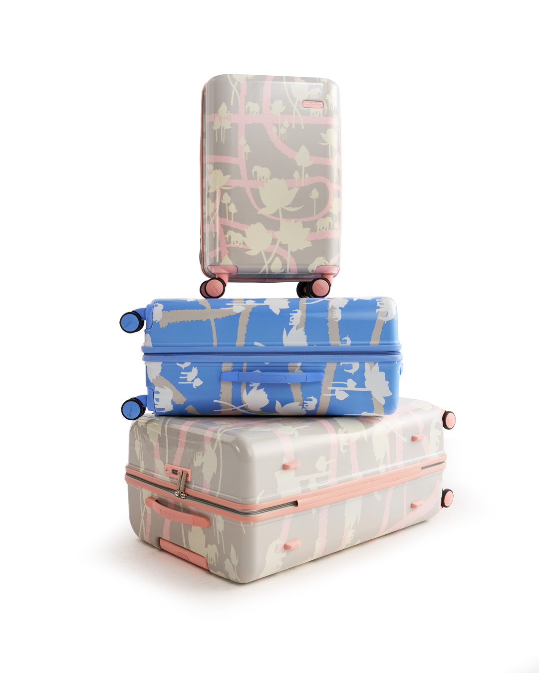 Infused with soft, joyful tones of pink, grey, blue, and white, and adorned with lotus and elephant motifs, each piece narrates a story of love, luck, and togetherness. These timeless Indian symbols meet clean, contemporary design, creating luggage that is equal parts statement and sentiment. Whether it's a bride embarking on her new journey, a friend travelling to a destination wedding, or a family exploring festive getaways, the Trousseau Collection turns every departure into a celebration.
