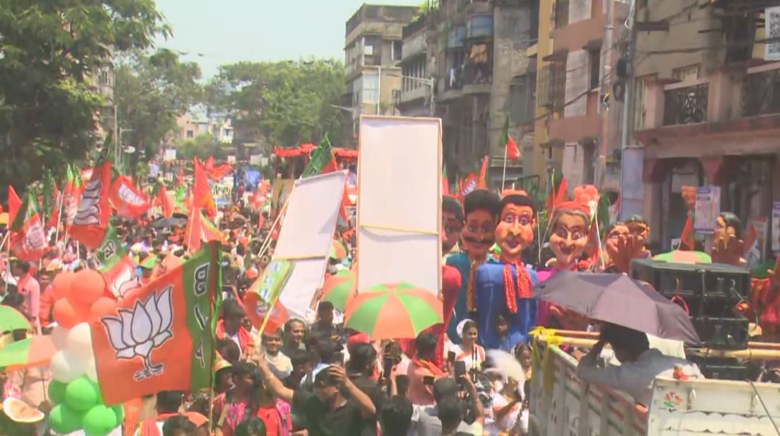 Kolkata (West Bengal) [India], April 2 : Union Home Minister Amit Shah on Thursday held a massive roadshow in Bhabanipur Assembly constituency, urging voters to support BJP's ahead of the West Bengal Assembly elections.
