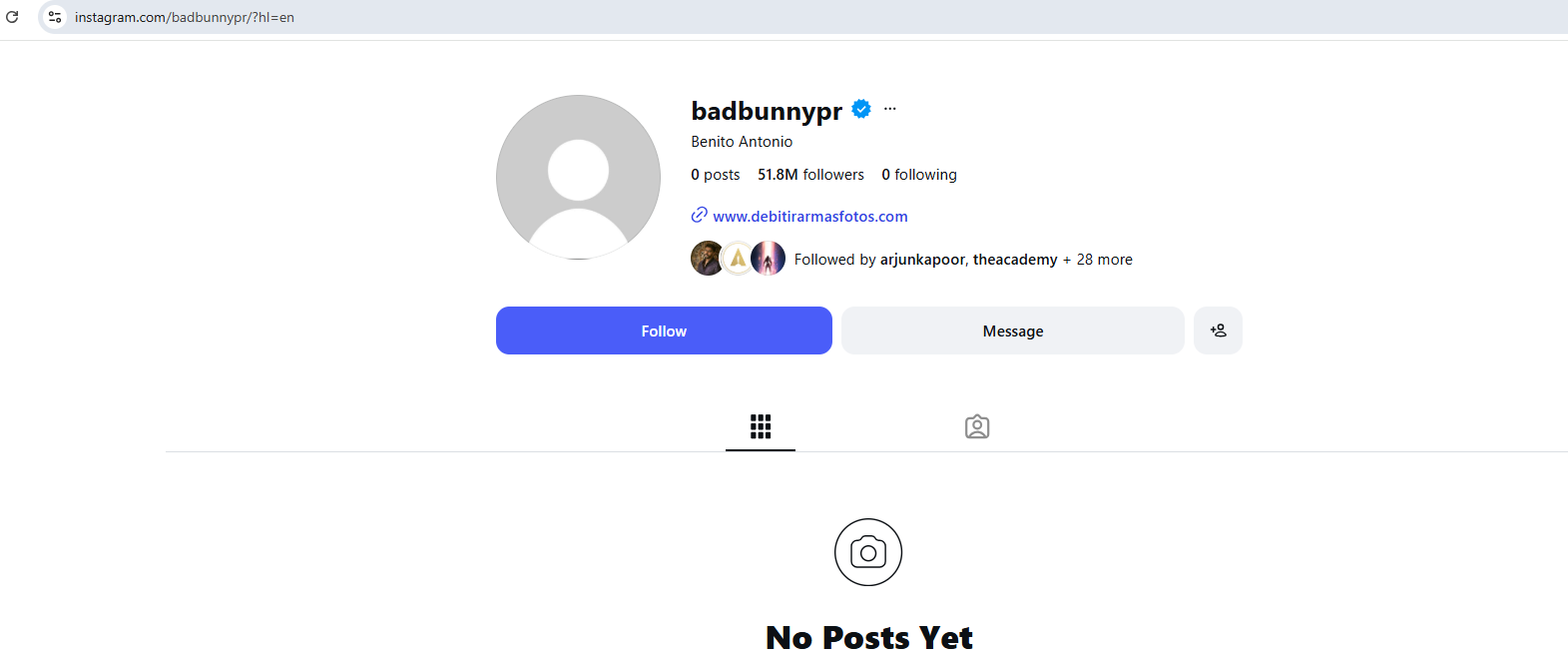 The sudden move has sparked widespread speculation among fans and industry watchers, especially given Bad Bunny's massive following of over 51.8 million on the platform. As of now, no official reason has been confirmed for the social media wipe.