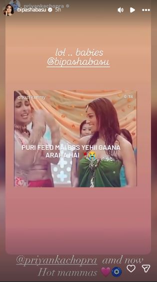 In another story, she gave a special mention to Bipasha and added, "lol..babies." The 'Alone' star, in a quick response, said, "and now Hot mammas."