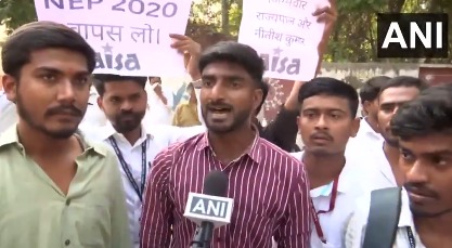 The students had also protested with slogans and posters calling for the National Education Policy to be taken back (NEP 2020 wapis lo).