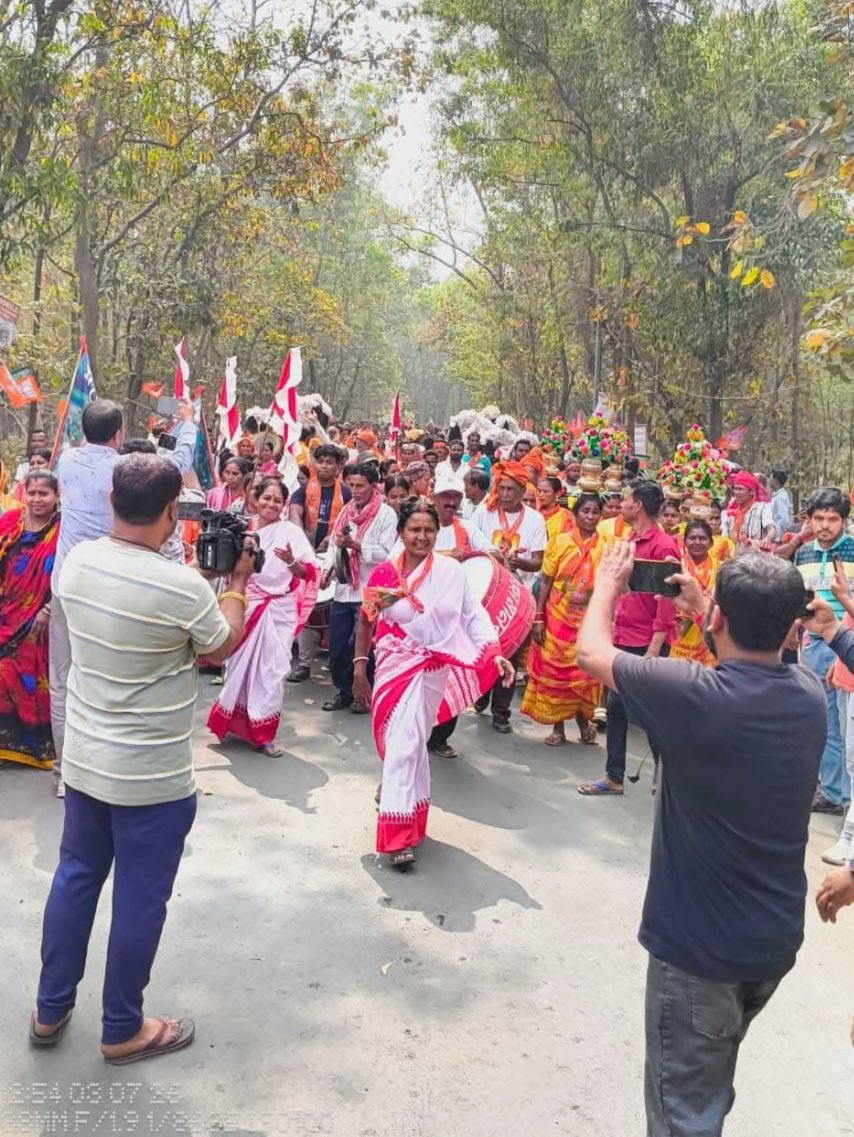 The Poriborton Yatra in Phulbari, Dakshin Dinajpur district, was attended by Union Minister Sukanta Majumdar, MP Khagen Murmu, Kartik Pal, MLA Budhrai Tudu, and other BJP leaders and workers.