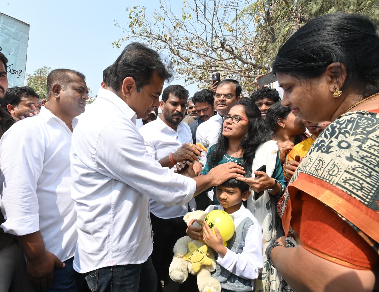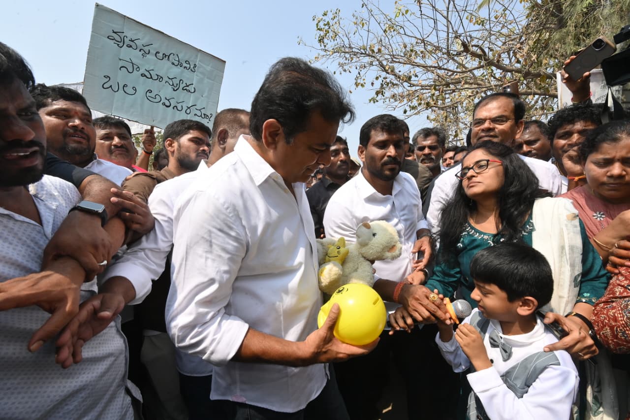 Later, addressing a meeting near Madhu Park Ridge Apartments, KTR urged the victims to try to protect their lands and apartments for two years, assuring that the Bharat Rashtra Samithi (BRS) would support them in this struggle. He promised that once KCR's government returns to power, no one would lose their land or house for the Musi project.