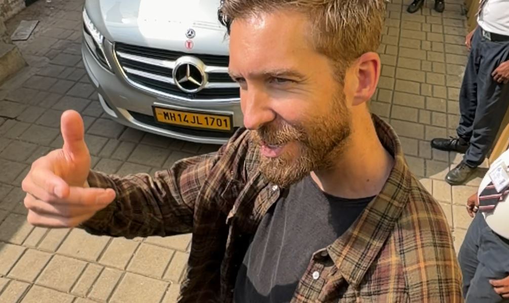 Calvin Harris poses for paps at Mumbai airport