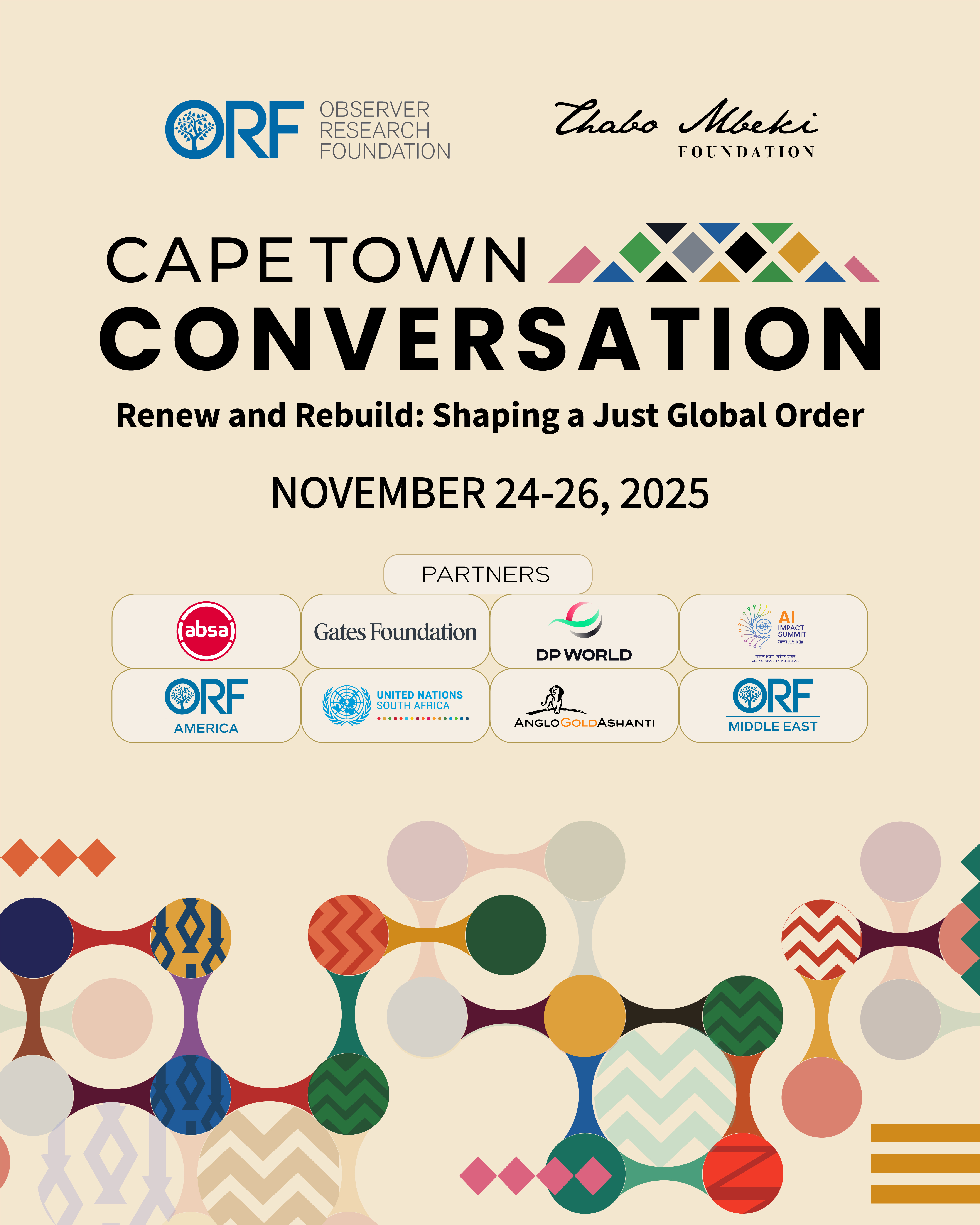 Cape Town [South Africa], November 25 : The Observer Research Foundation (ORF), in partnership with the Thabo Mbeki Foundation, is hosting the third edition of the Cape Town Conversation from November 24 to 26, 2025. The gathering aims to deepen dialogue on global challenges at a time when the international system is undergoing significant change.
