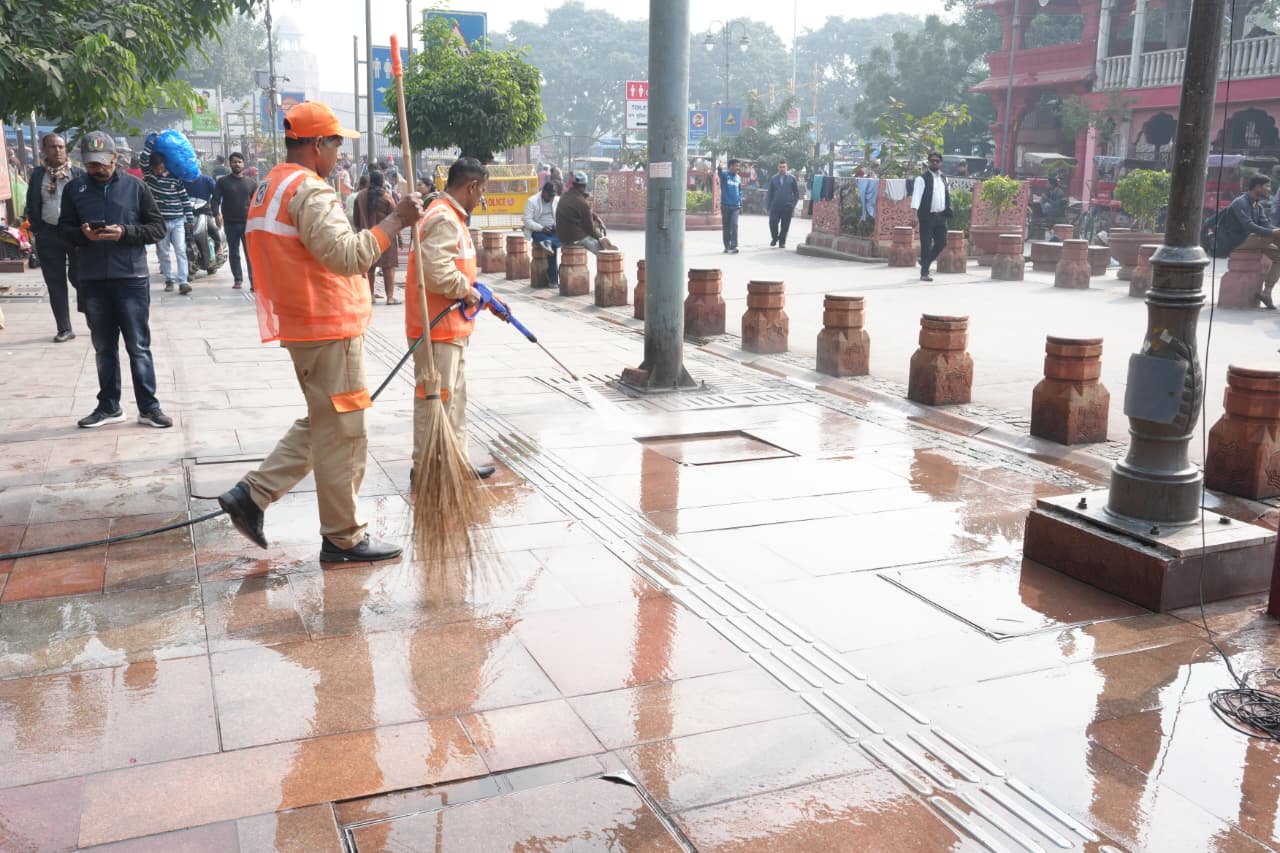 Work on the ground is progressing at a rapid pace. A large number of sanitation workers have been deployed across Chandni Chowk and the Red Fort area to ensure that streets, lanes, and marketplaces remain clean at all times.