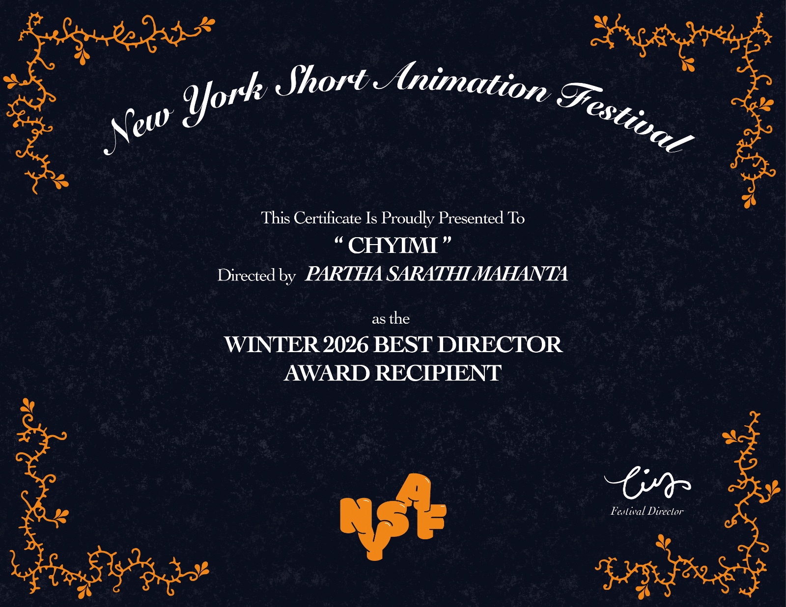 Speaking about the recognition, Dr. Partha Sarathi Mahanta said that - "Animation allows stories to travel beyond boundaries of language and geography. I am honoured that 'CHYIMI' has been recognised on an international platform like the New York Short Animation Festival."
