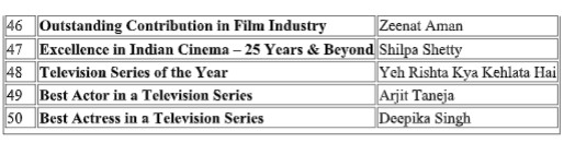 The star-studded night was graced by industry stalwarts including Zeenat Aman, Usha Uthup, Shiamak Davar, Amit Trivedi, Vikrant Massey, Ravie Dubey, Sargun Mehta, Dhanshree Verma, Bosco-Caesar, Marzi Pestonji, Deepika Singh, Arjit Taneja and the cast of Yeh Rishta Kya Kehlata Hai, among others. Adding an international touch, the biggest highlight of the evening was the appearance of an Oscar-nominated actress from Spain, who flew to India to personally receive her Best International Actress Award for her acclaimed film Emilia Perez.