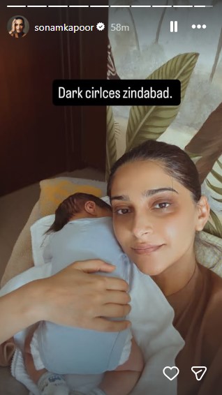 On Friday, Sonam Kapoor shared an unfiltered selfie on her Instagram Stories, in which she is seen holding her newborn son, who rests gently against her shoulder. Dressed in a brown top with her hair neatly pulled back, the actor clicked a selfie, highlighting her under-eye dark circles.