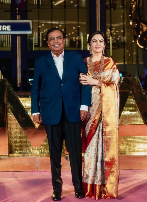 Nita Ambani's look stood out for its symbolic and aesthetic detailing. At the heart of her appearance was a custom molten gold silk saree that delivered a luminous, almost liquid-like sheen under the event lights.