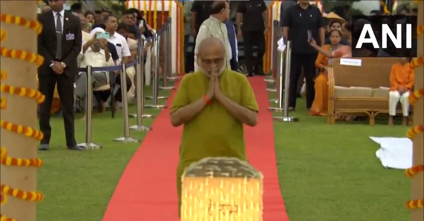 New Delhi [India], October 2 : Prime Minister Narendra Modi and Vice President CP Radhakrishnan attended a prayer meeting on Thursday in remembrance of Mahatma Gandhi on his birth anniversary.