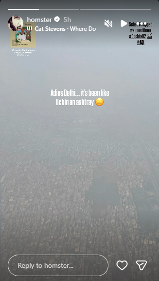 "Adios Delhi... it's been like lickin an ashtray. Sched Wrapped #AlmostThere #Cocktail2 #AQI," he posted.