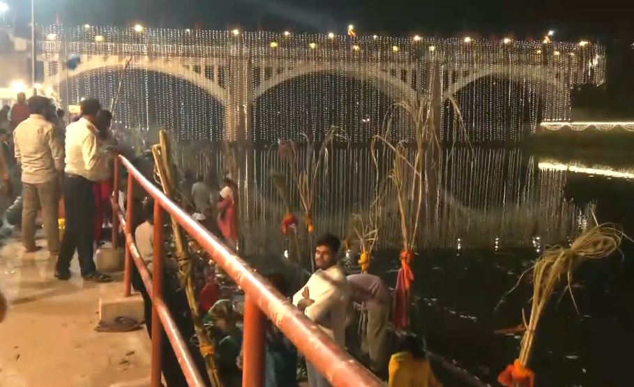 In Delhi, ITO's Hathi Ghat has been illuminated, where devotees offered prayers to the rising sun.