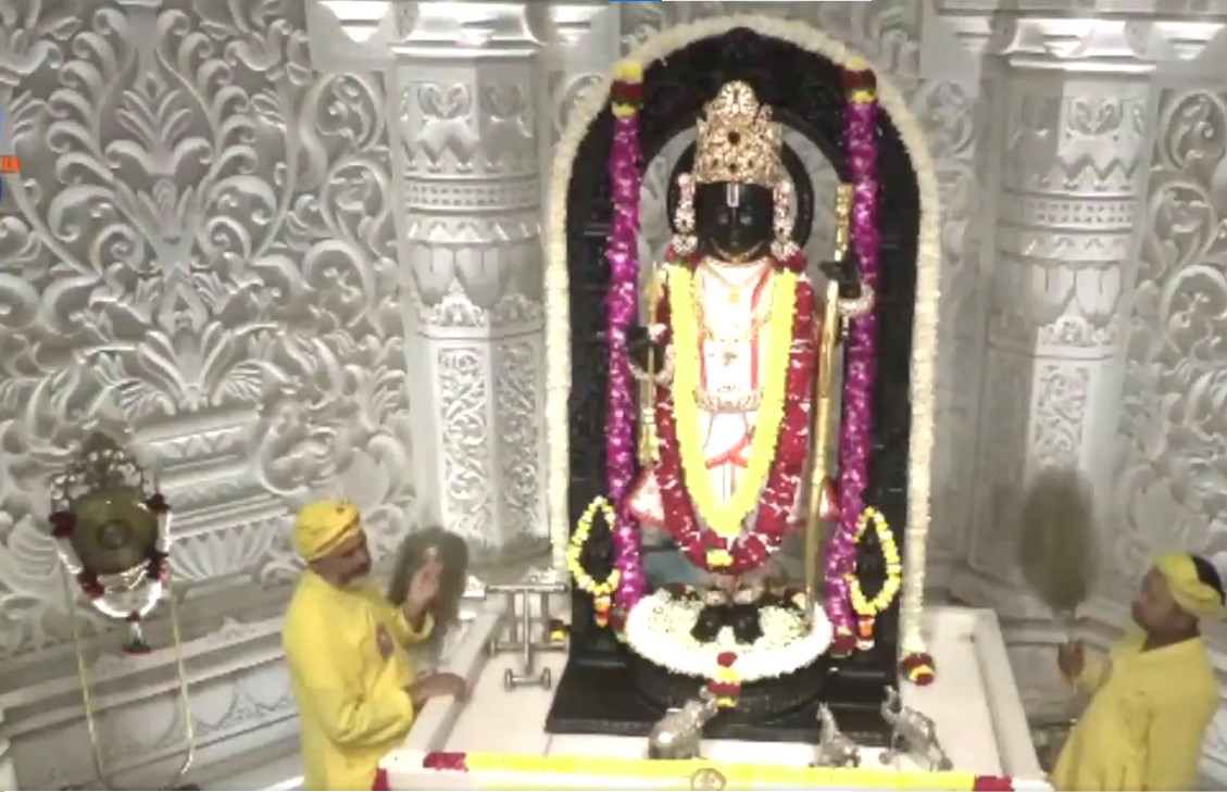 In Ayodhya, devotees continued to celebrate at Shree Ram Janmabhoomi Mandir, where large numbers attended the Aarti to honour Lord Ram.