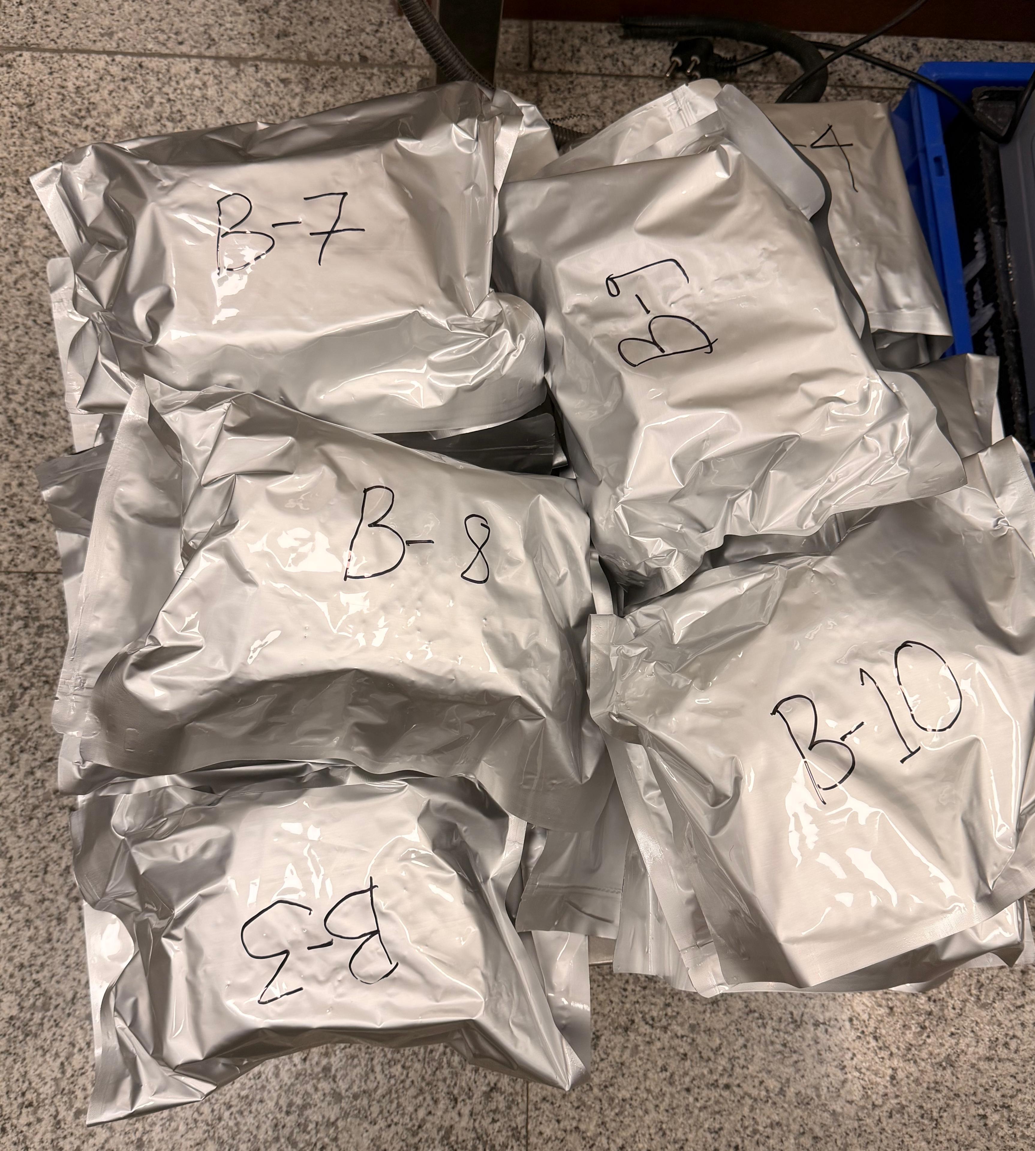 On systematic examination of the check-in baggage of the passengers, multiple packets containing greenish-brown lumpy substance concealed inside trolley bags were recovered.