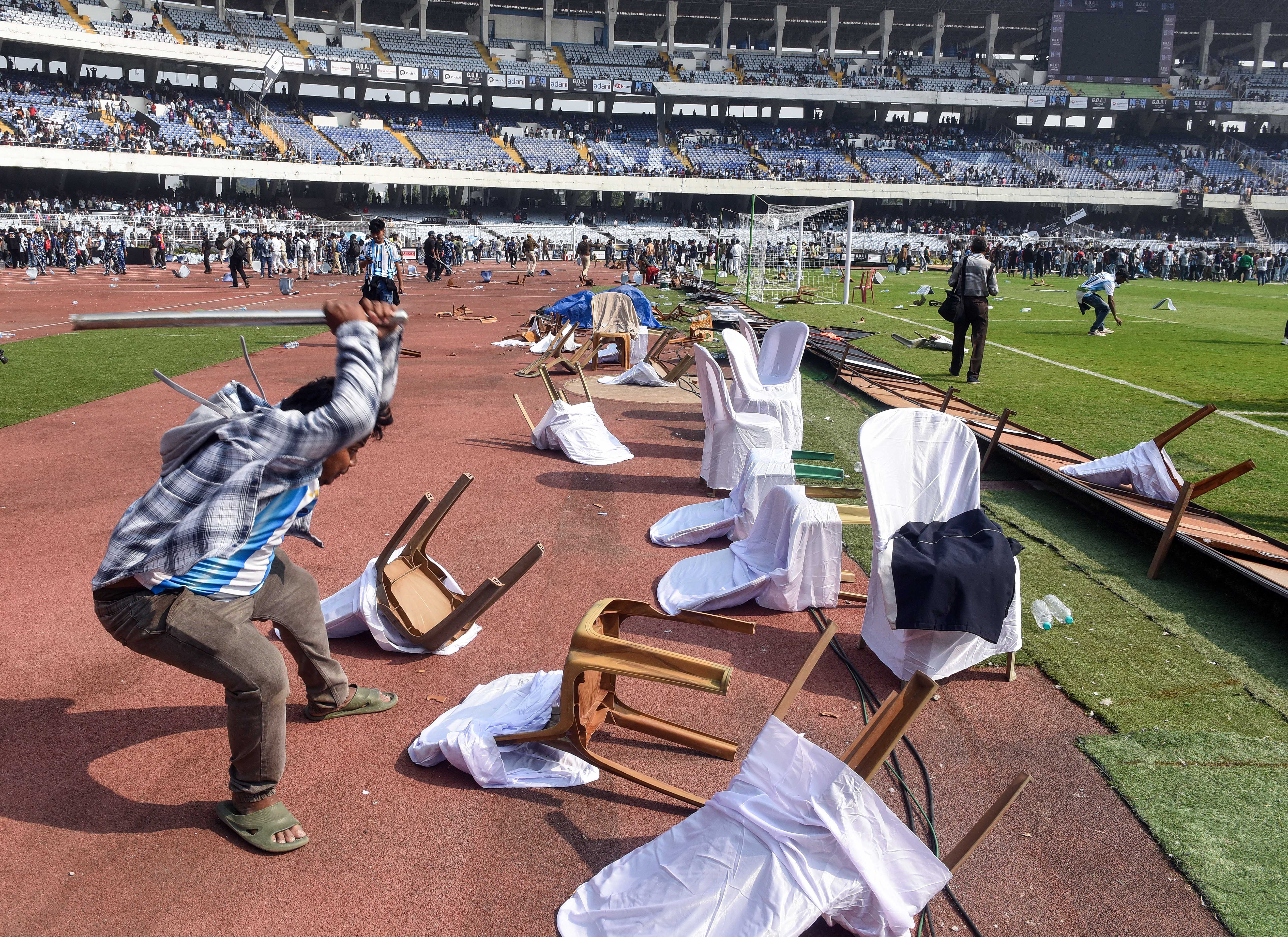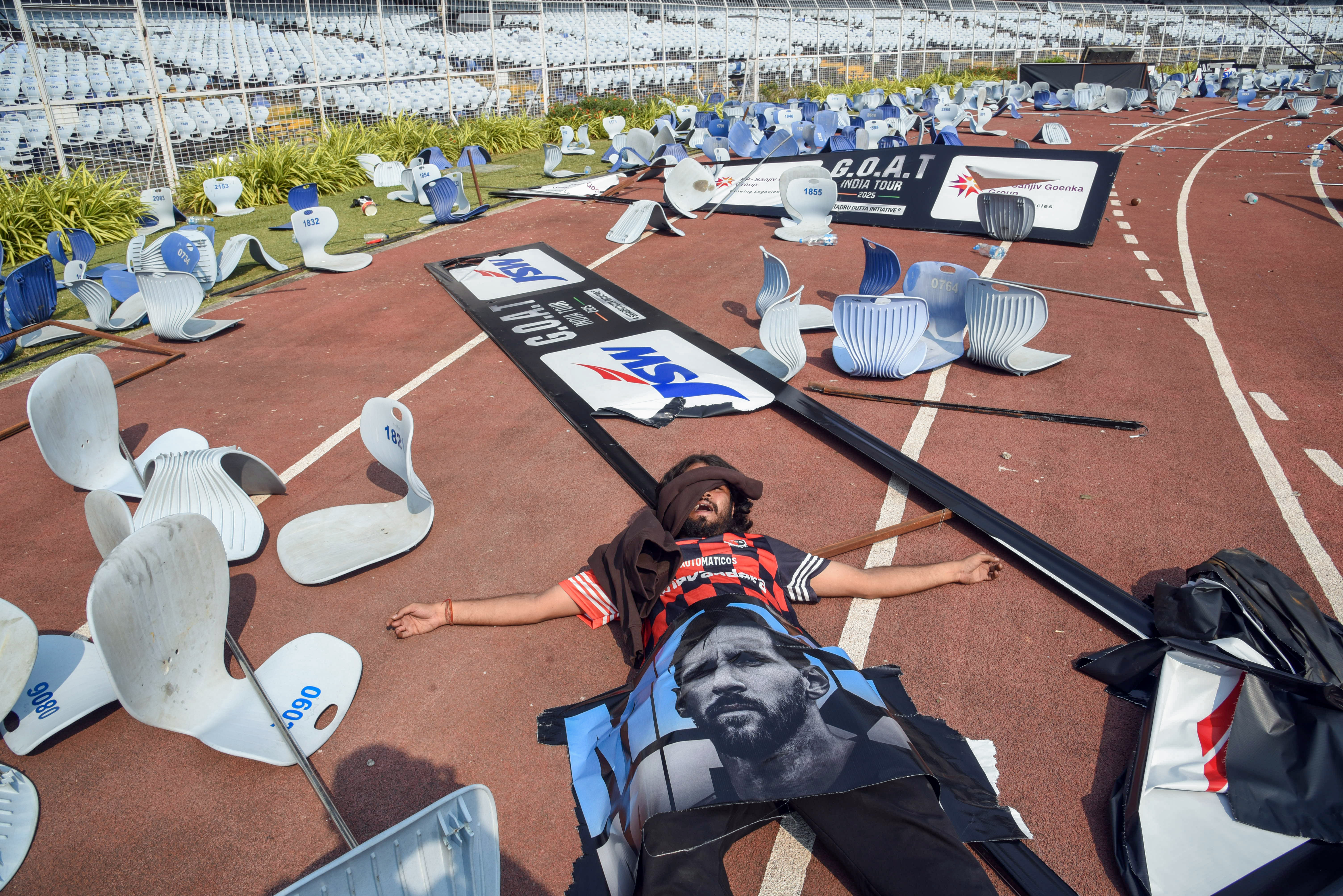 Angry fans vandalised parts of the stadium, accusing organisers of poor planning and mismanagement. West Bengal Sports Minister Aroop Biswas resigned from his post following the chaos that erupted during Footballer Messi's GOAT India Tour in Kolkata. Chief Minister Mamata Banerjee accepted Biswas' resignation