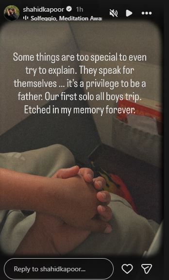 Taking to his Instagram Stories, Shahid shared a touching moment from a flight, capturing him tenderly holding little Zain's hand.