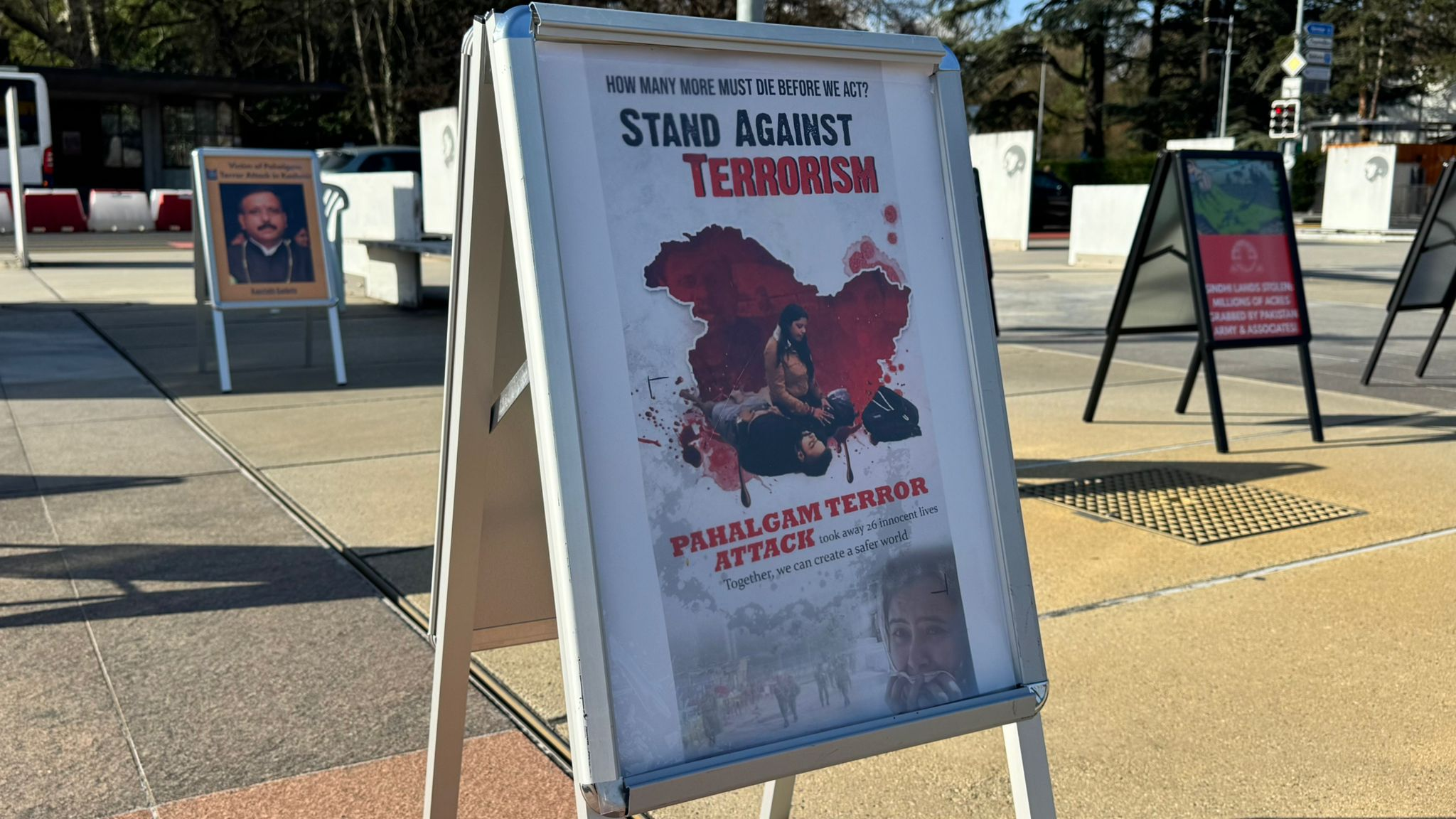 Several panels also focused on Pakistan's alleged support for terrorism in Jammu and Kashmir. Visual materials referenced incidents of cross-border militancy and violence, including the Pahalgam attack in 2025. They displayed the photographs of the victims of the attack and menacing evidence of the carnage, which the organisers said demonstrated the continuing threat posed by militant networks operating from Pakistani territory.
