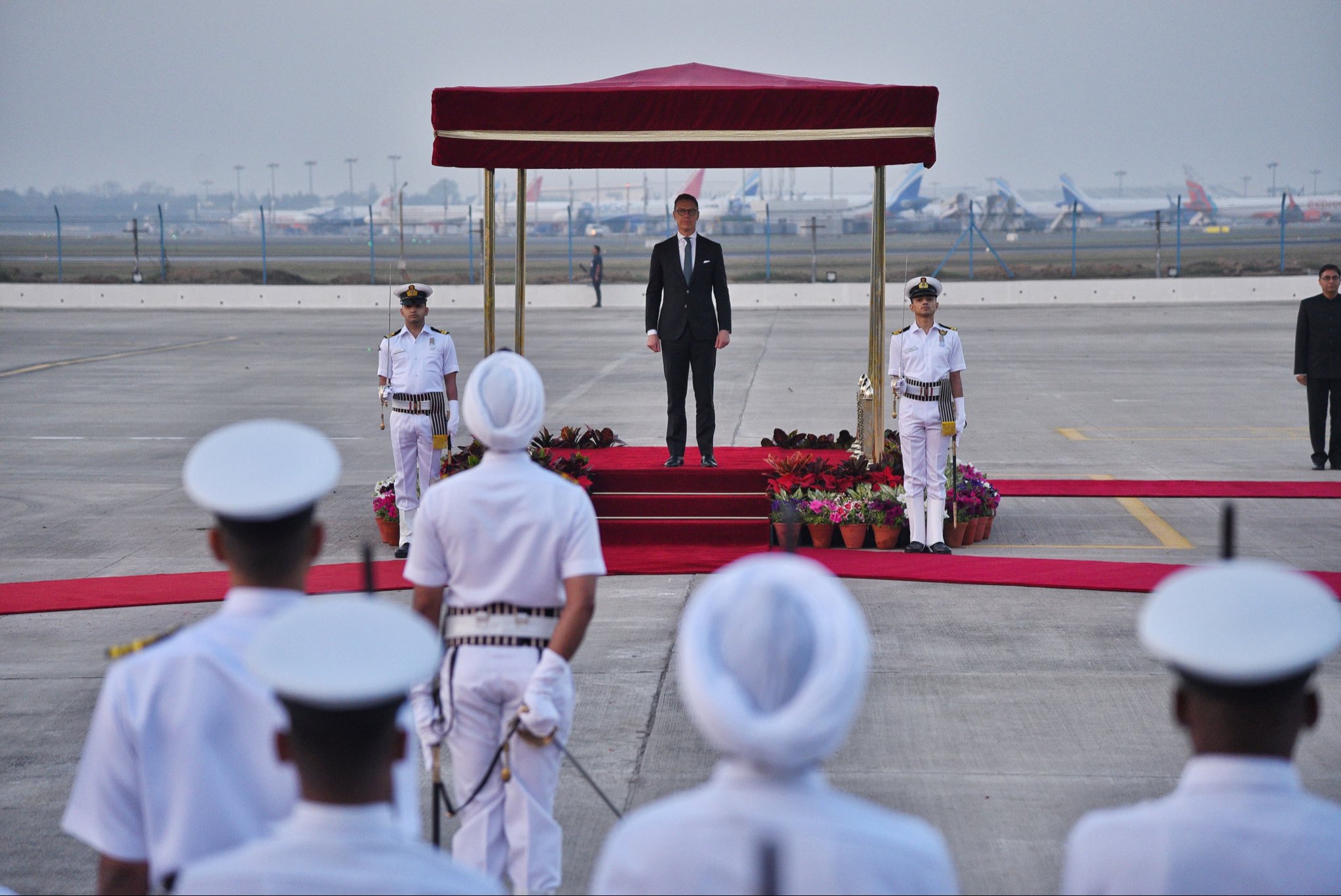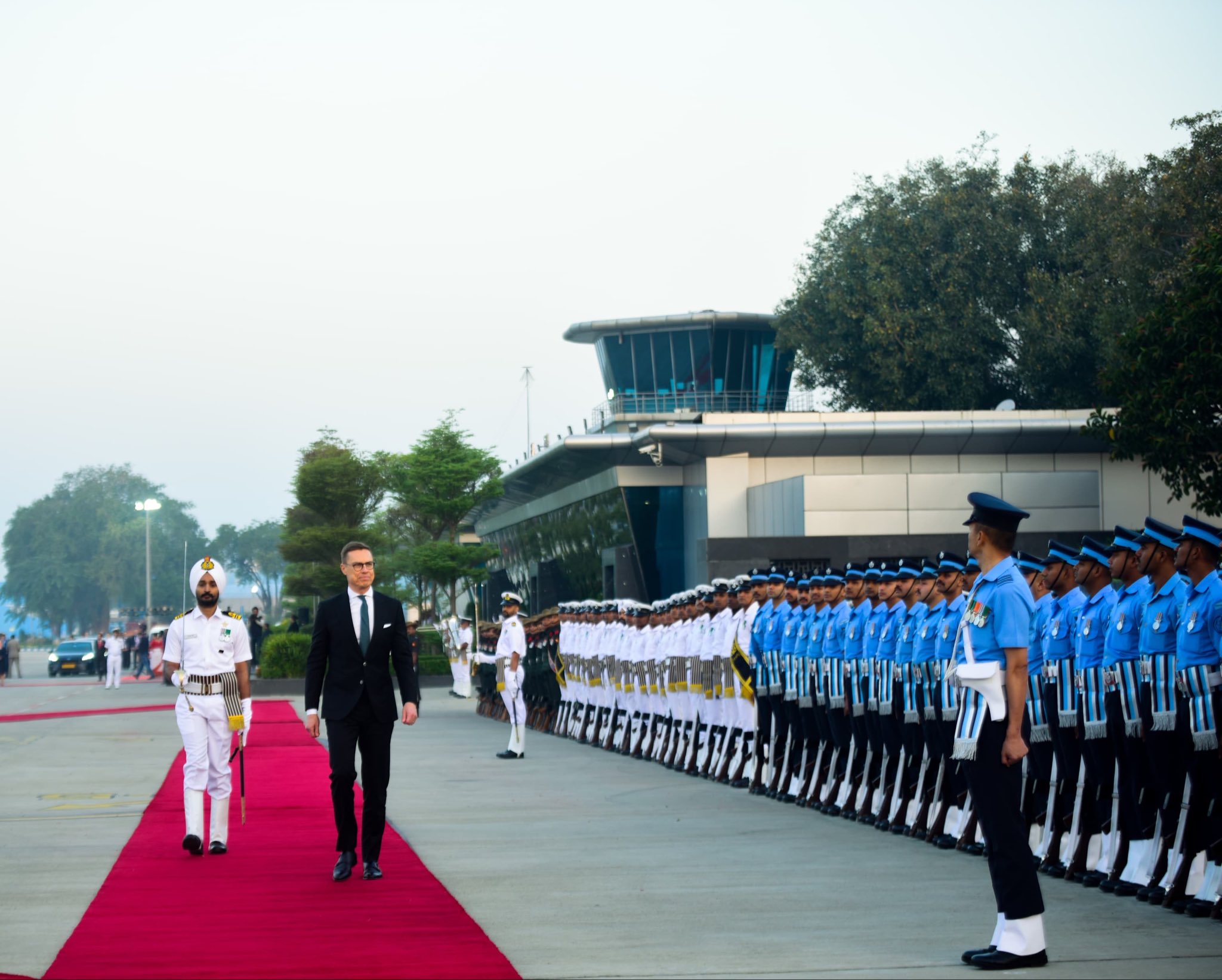 According to the post, President Stubb received a Guard of Honour and was welcomed at the airport by Minister of State for External Affairs V. K. Singh.