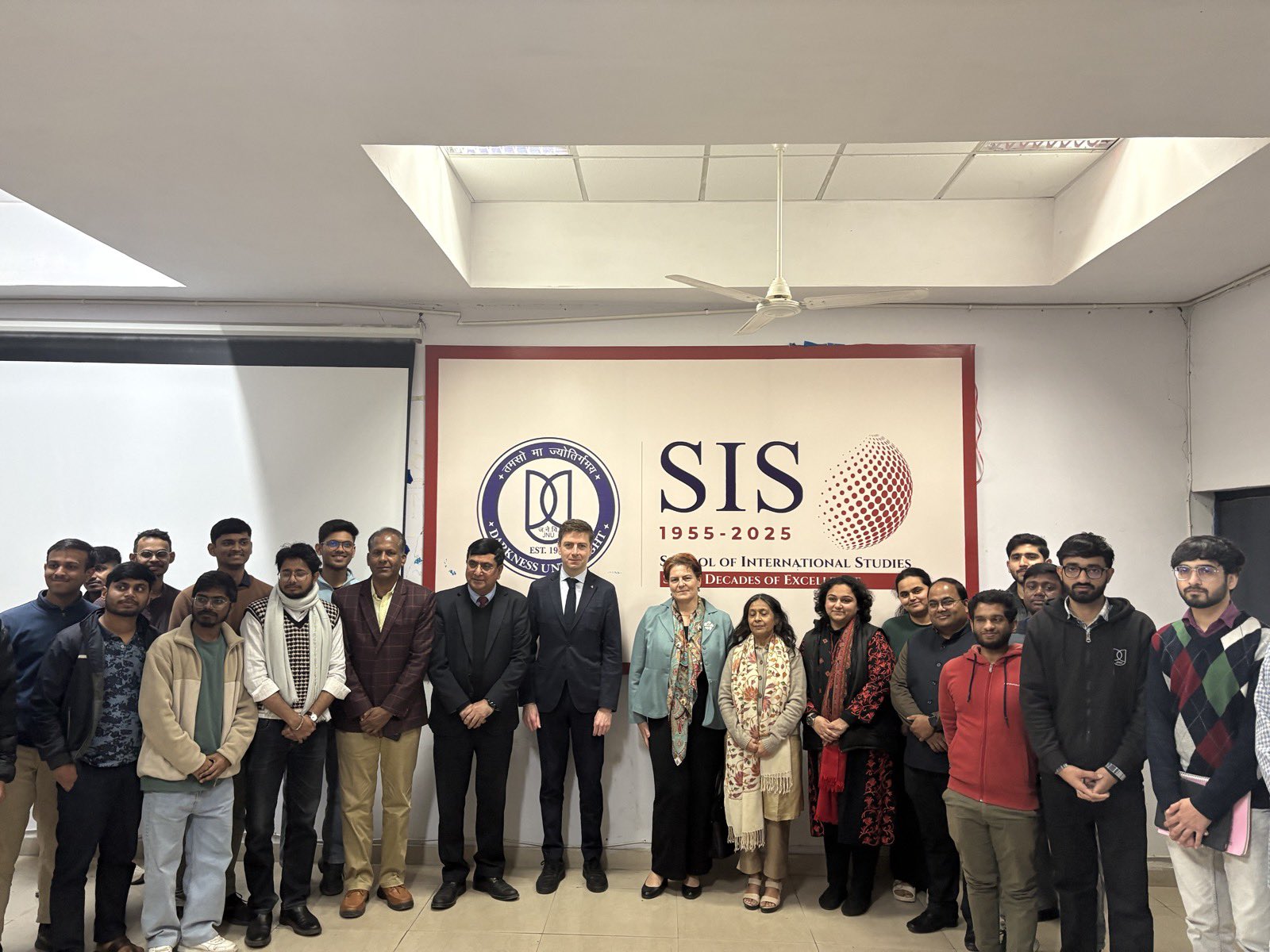 In a post on X, the embassy of Lithuania in India said, " @LithuaniaMFA Political Director (Foreign Secretary) Laimonas Talat-Kelpsa delivered the Second Hermann Kallenbach Lecture at @JNU_official_50 School of International Studies today, sharing insights on Lithuania's foreign policy priorities in a changing global landscape. "