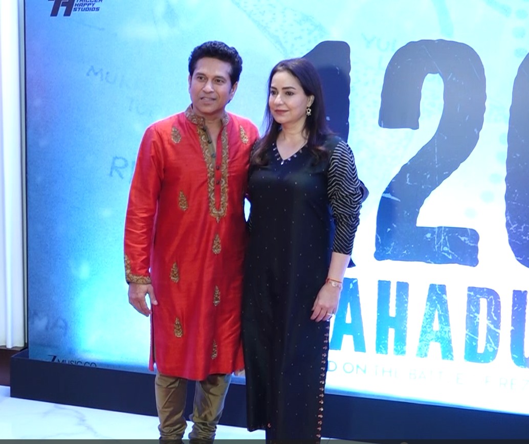 Legendary cricketer Sachin Tendulkar was also spotted at the event. He posed for the camera with his wife, Anjali Tendulkar.