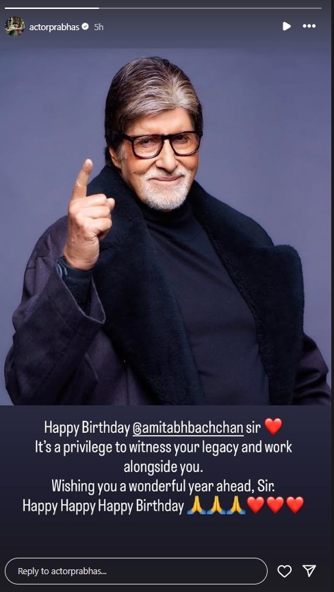 'Kalki 2898 AD' star Prabhas, who shared screen space with Bachchan in the sci-fi film, posted a heartfelt birthday message on Instagram along with a photo featuring the two actors.