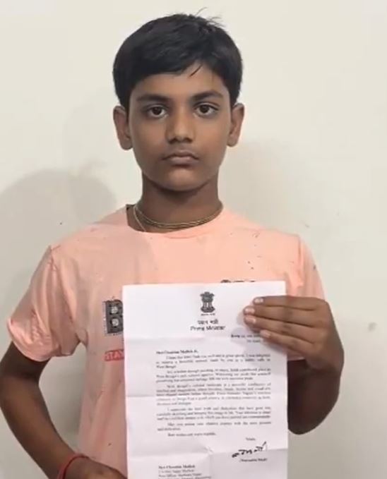 Chandan Mallick, a Class 9 student from Darjeeling, West Bengal, has received a letter of gratitude from Prime Minister Narendra Modi for presenting him with a sketch during a public rally held in Siliguri on April 12.