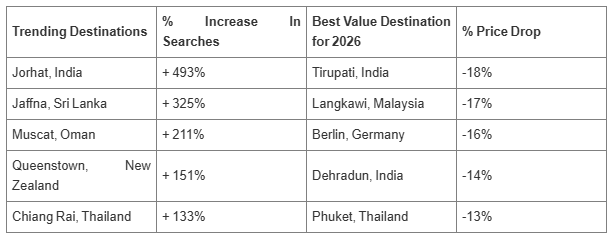 Neel Ghose adds, "What we're seeing is that Indian travellers are gravitating towards deeper cultural connections and experiences. Social media, particularly authentic video guides, are inspiring this wanderlust and shaping how people choose their next destination. The surge in searches for places like Jorhat and Jaffna reflect a desire to explore relatively lesser-known gems, rich in heritage and local flavour. On the other hand, the best value destinations have benefited from improved connectivity, new routes, and expanded flight options, making traditionally premium locations like Berlin more accessible to a larger number of Indians. Together, this shows how travellers are becoming more intentional and strategic in their choices for 2026."