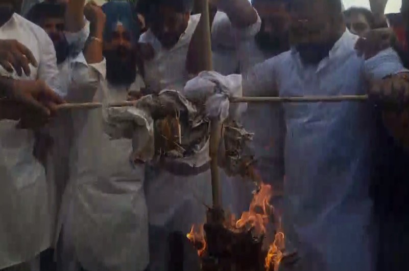 Similar scenes played out at the home and office of MP Rajinder Gupta, where protesters inscribed "Traitors of Punjab" and burned his effigy.