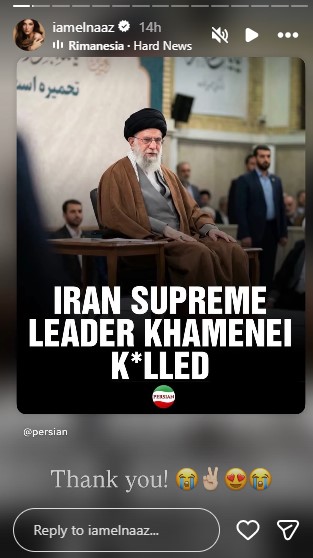 Elnaaz, who was born in Iran and later moved to Germany before building a career in India, expressed joy over the death of Khamenei.