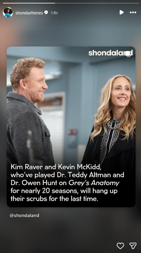 Kim Raver also confirmed her exit from the show on her Instagram handle.