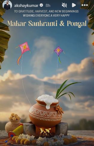 Star Akshay Kumar shared a photo on his Instagram handle, wishing his fans a "happy Makar Sankranthi'.