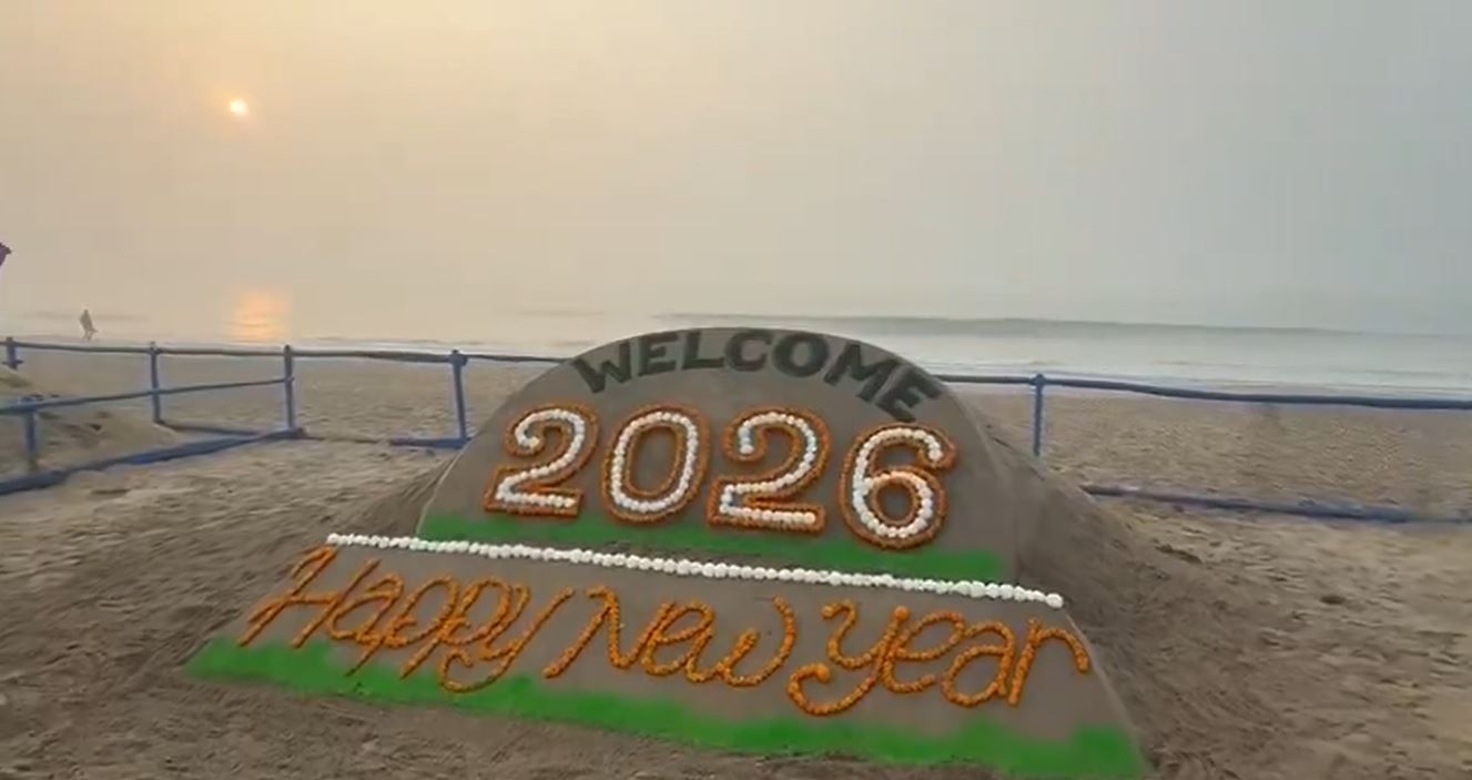 The renowned sand artist Sudarsan Pattnaik created a sand art extending New Year greetings on Thursday in Puri. The sand art featured 'Welcome 2026. Happy New Year.'
