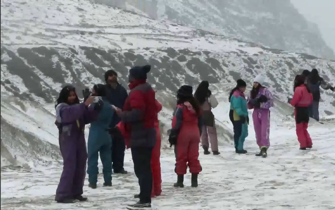 The Tourists at the Rohtang Pass in Himachal were in for a treat as they celebrated the new year with snowfall. The tourists were seen relishing the fresh snowfall and enjoying the beauty of the snow-capped mountains.