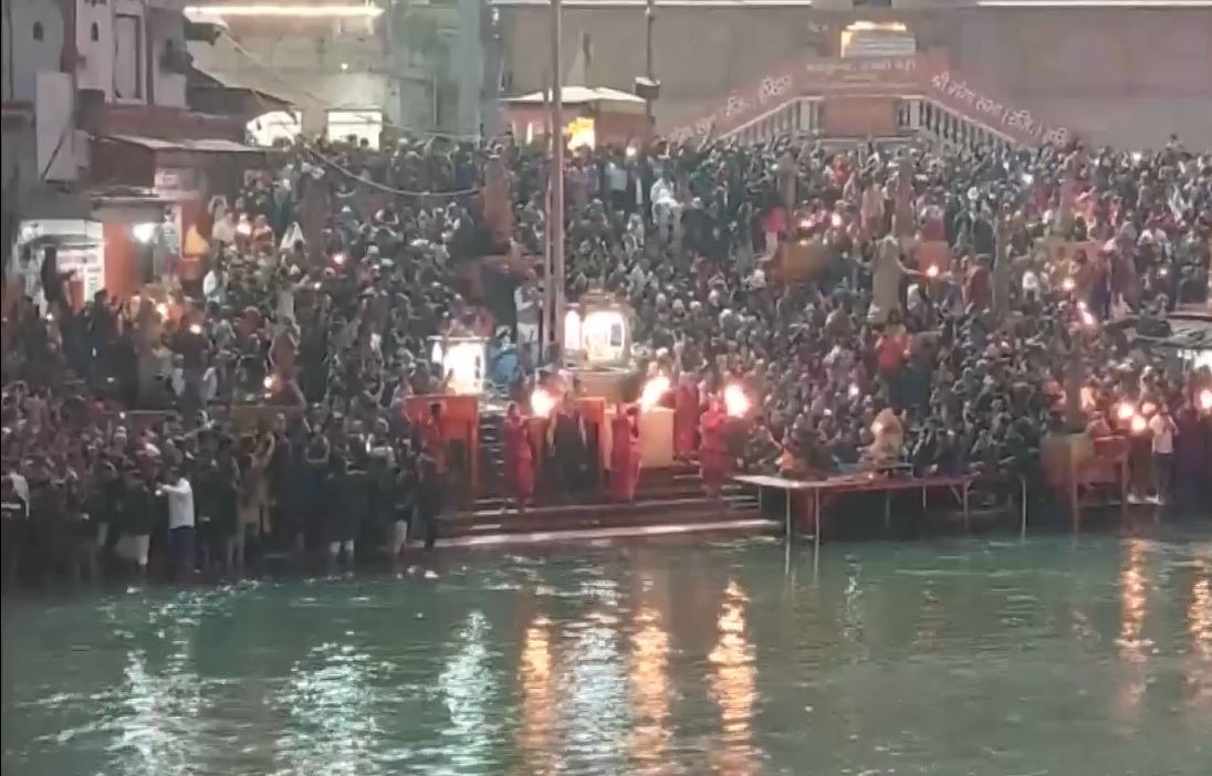 In Haridwar, a huge crowd of devotees gathered at the Har ki Pauri for Ganga Aarti on the first day of the New Year 2026.