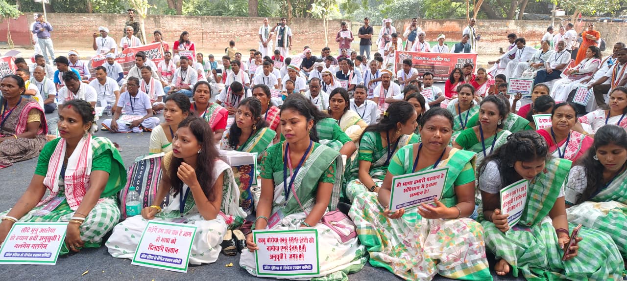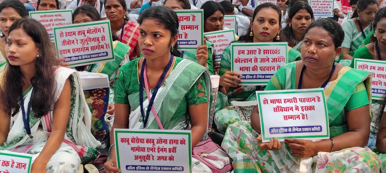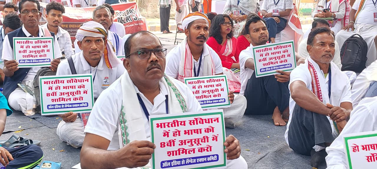 The one-day mass dharna drew the participation of nearly 500 people, including students, intellectuals, and community leaders from Jharkhand, Odisha, Chhattisgarh, and West Bengal, according to a statement from the All India Ho Language Action Committee (AIHLAC).