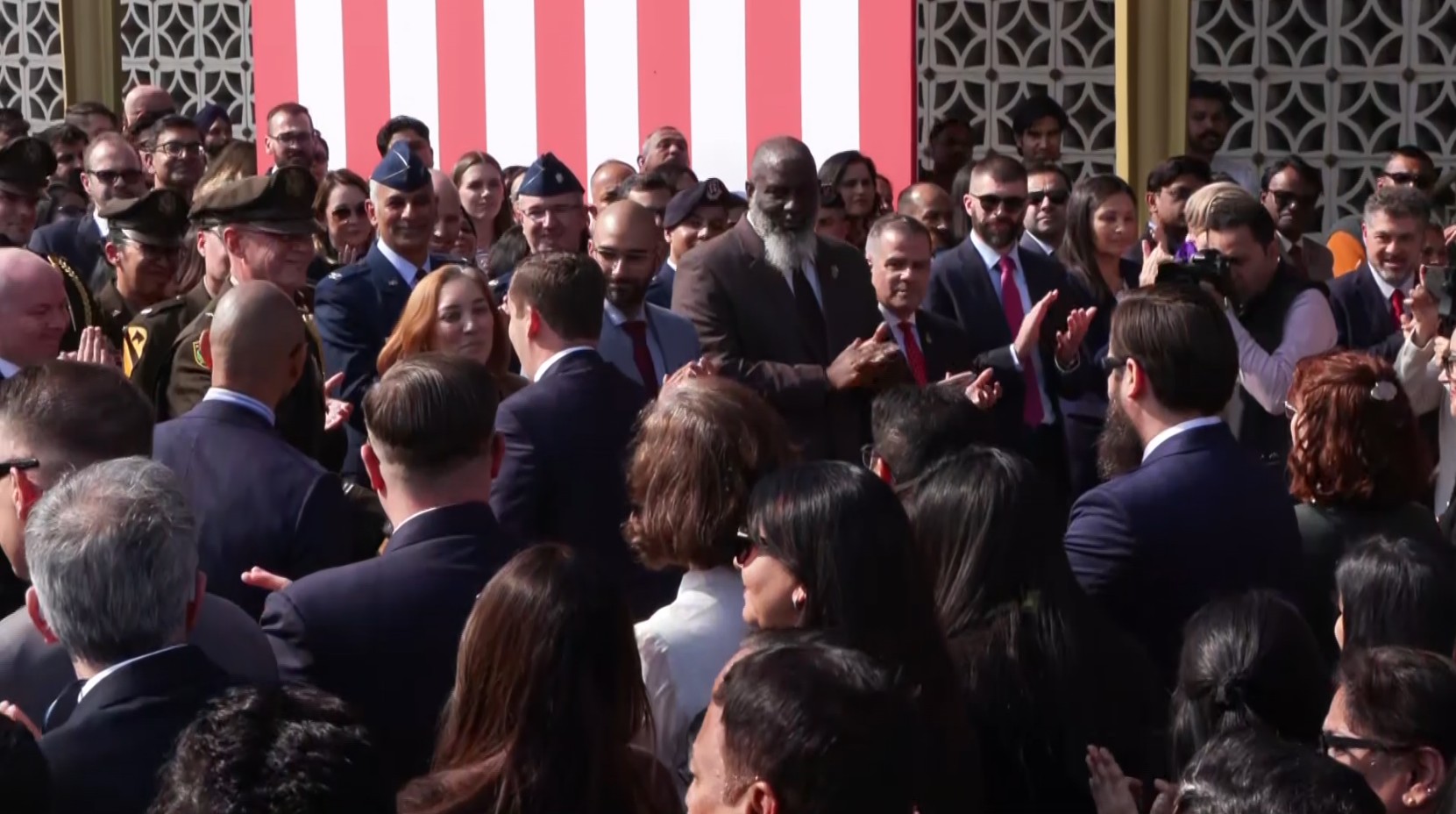 'Hold On, I'm Comin' by Sam & Dave plays as Sergio Gor walks to take oath as US Ambassador to India
