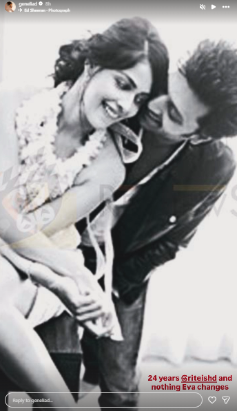 On the other hand, Genelia also shared a picture with her husband on her Instagram story and wrote, "24 years and nothing Eva changes."