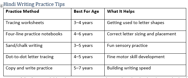 When many kids know how to read Hindi letters, they don't know how to write them. Learning to write in Hindi takes time and practice. Here are some easy and fun ways: