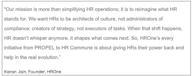 As HROne continues to build India's simplest, AI-supercharged HCM software, PROPEL carries its parallel mission to remind the world that while technology executes, it is humans who decide. Together, they reflect a unified vision: to elevate HR from a support role to a strategic voice that shapes culture, choices, and the future of work.
