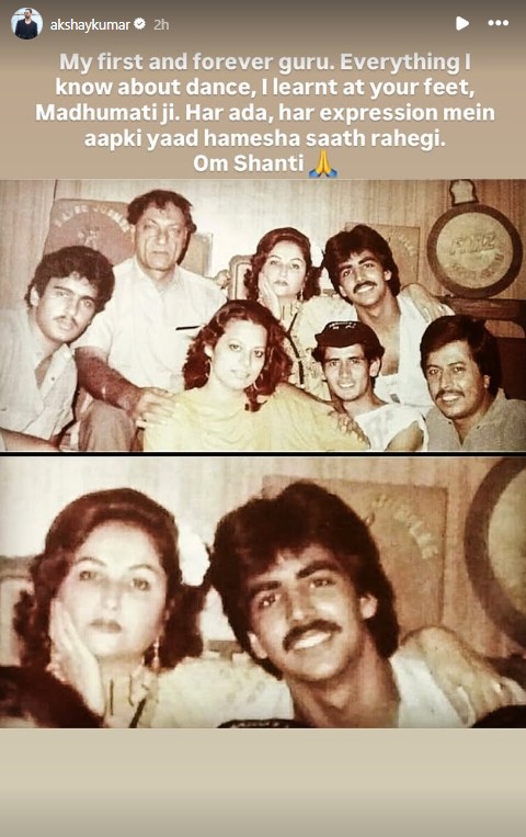 "My first and forever guru. Everything I know about dance, I learnt at your feet, Madhumati Ji. Har ada, har expression mein aapki yaad hamesha saath rahegi. Om Shanti," Akshay Kumar wrote.
