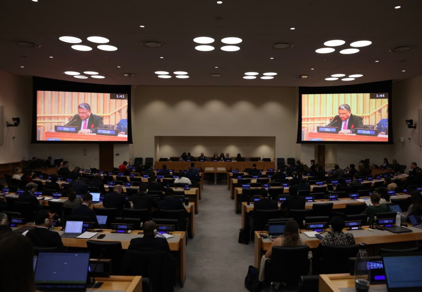 "Secretary (West) @AmbSibiGeorgedelivered the national statement at the IGN meeting on @UN Security Council reforms in the UN headquarters," the post noted.
