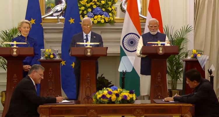 PM Modi, EU Commission President Ursula von der Leyen and EU Council President Antonio Costa announced the conclusion of the India-European Union Free Trade Agreement (India-EU FTA) at the 16th India-EU Summit on Tuesday. The documents on the FTA conclusion were exchanged between EU Trade Commissioner Maros Sefcovic and Union Commerce Minister Piyush Goyal. This announcement marks a historic milestone in India-EU economic relations and trade engagement with key global partners.