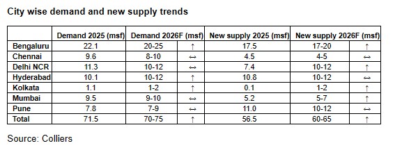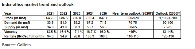 India office market stays robust: Demand projected at 70-75 million sf and new supply likely to touch 60-65 million sf in 2026: Colliers